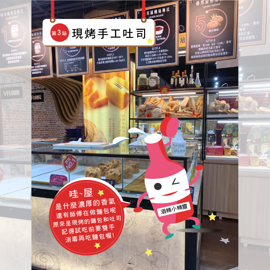 館內共有五區提供酒精手部消毒,記得試吃前請先雙手消毒喔!